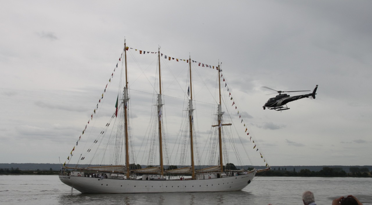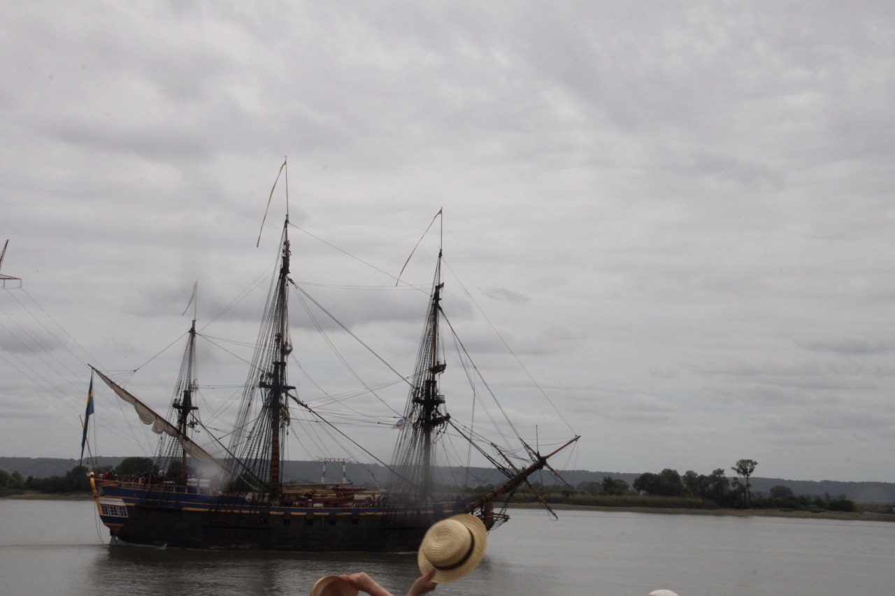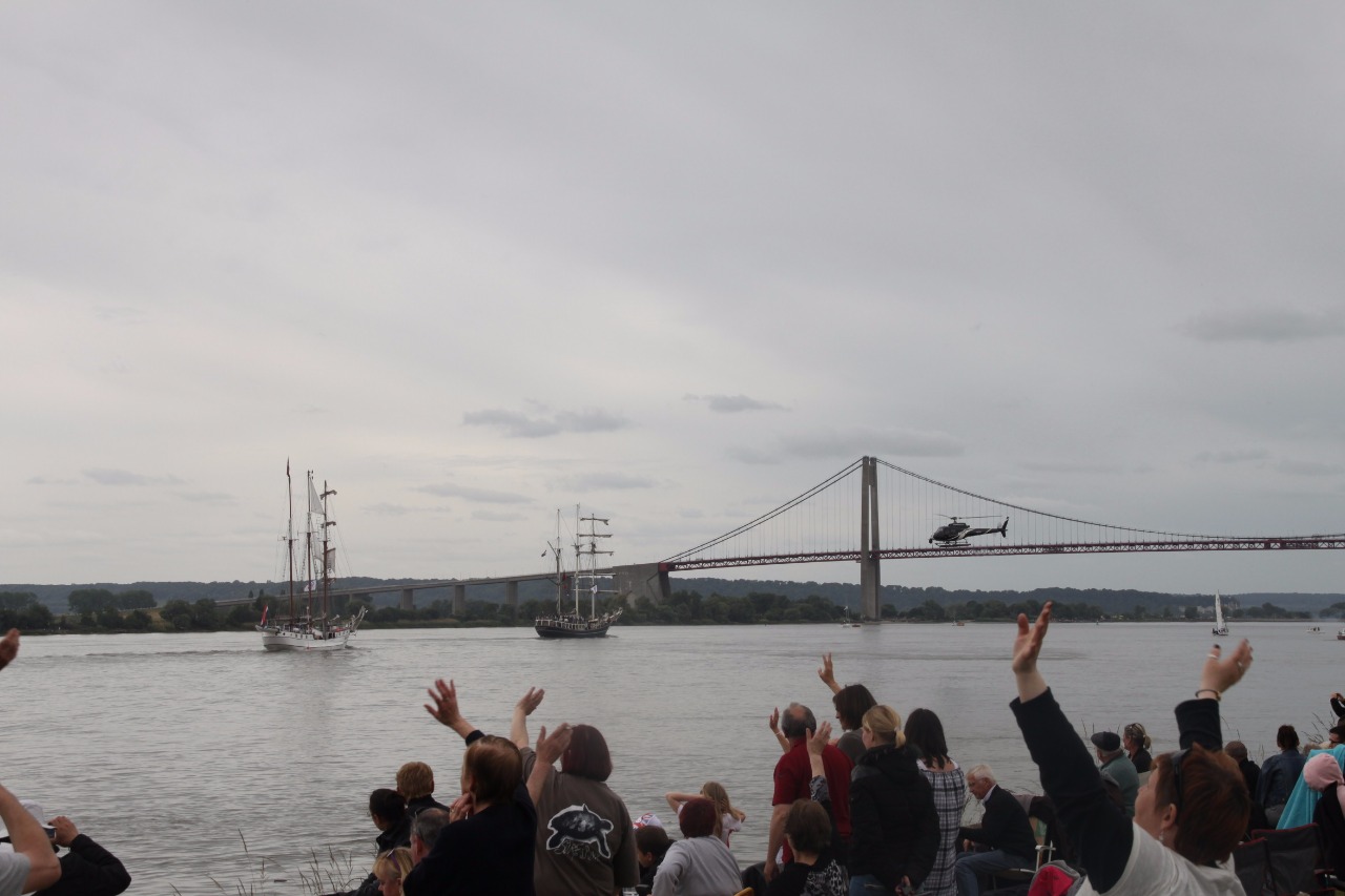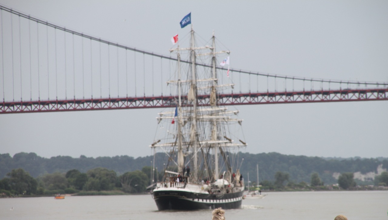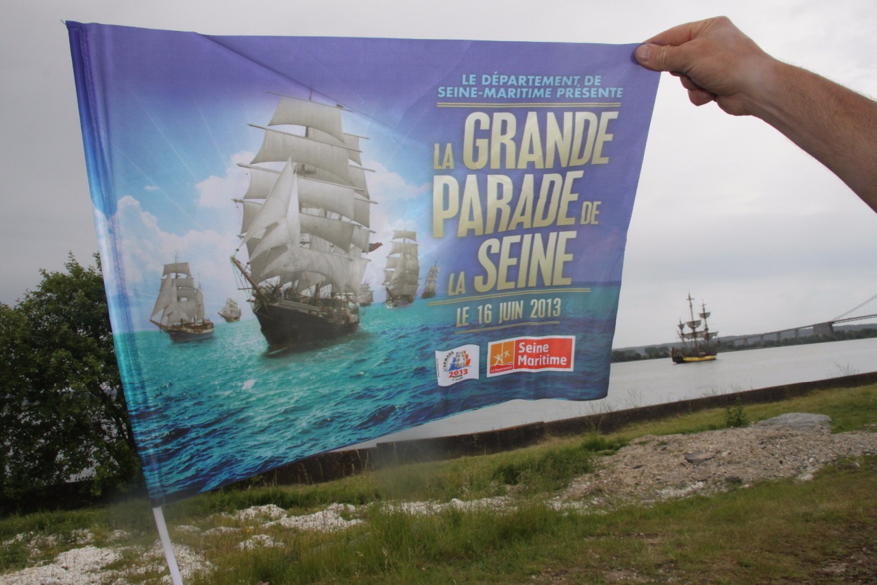 Dans un petit coin, le long de la Seine, afin de voir passer les bateaux de l'Armada.